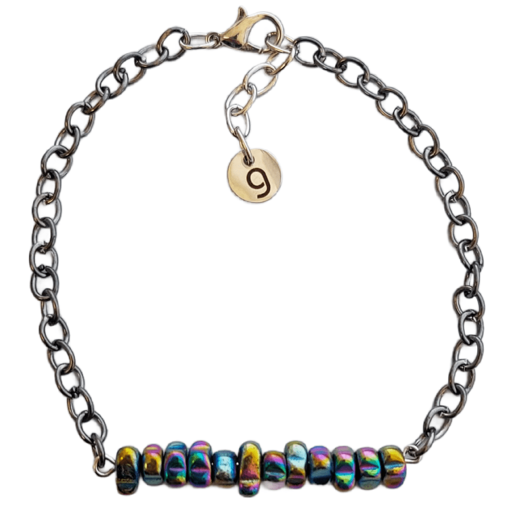 Dark Side of The Moon Collection – Virgo in Shadow – Hematite Bar Bracelet