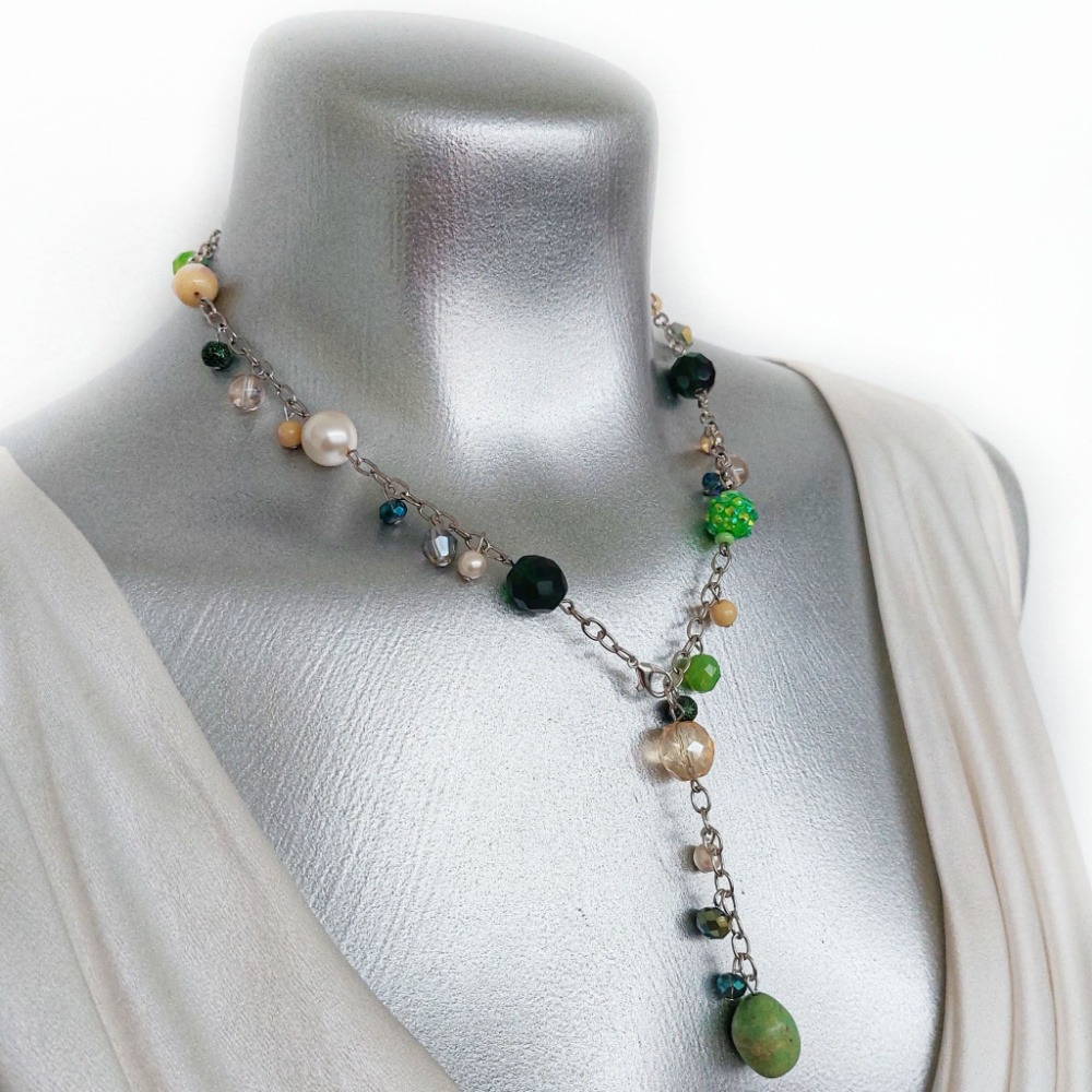 Evergreen Elegance Collection – Cream & Clover – Adjustable Drop Necklace