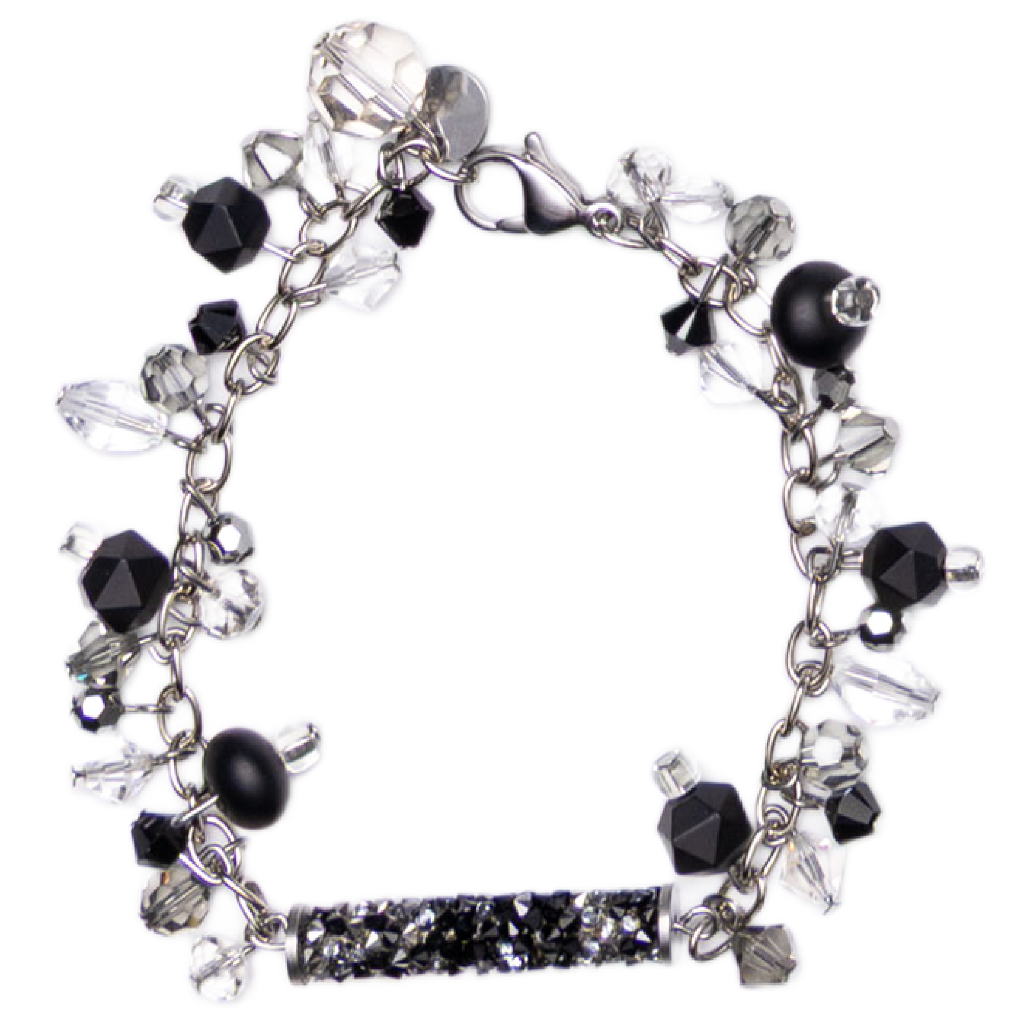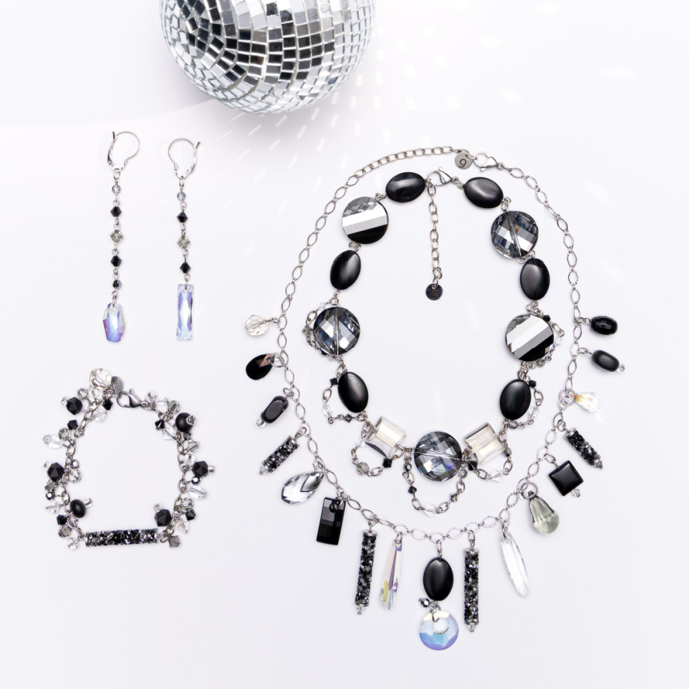 Featuring onyx gemstones paired with Swarovski® crystals, each piece is chosen for its precision-cut brilliance and mirrored clarity. Together, they echo illuminated skylines, moonlit facades, and the quiet opulence of private heights — light refracted through glass, silver, and night air.