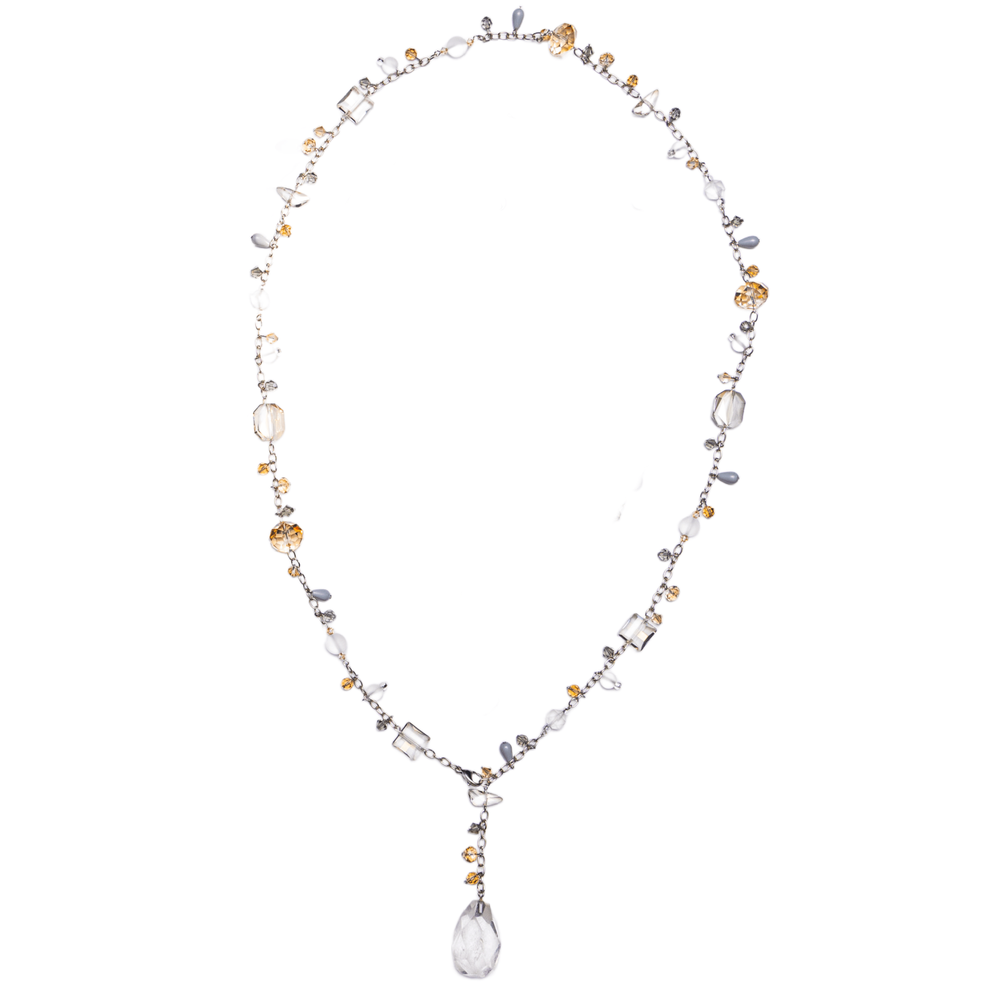 Featuring ice-like quartz pendants and quartz gemstones paired with Swarovski® crystals, chosen for their crystalline clarity and natural luminosity. Together, they evoke frozen fjords, glacial formations, and the subtle shimmer of light reflecting across ice — elemental, still, and breathtakingly serene.