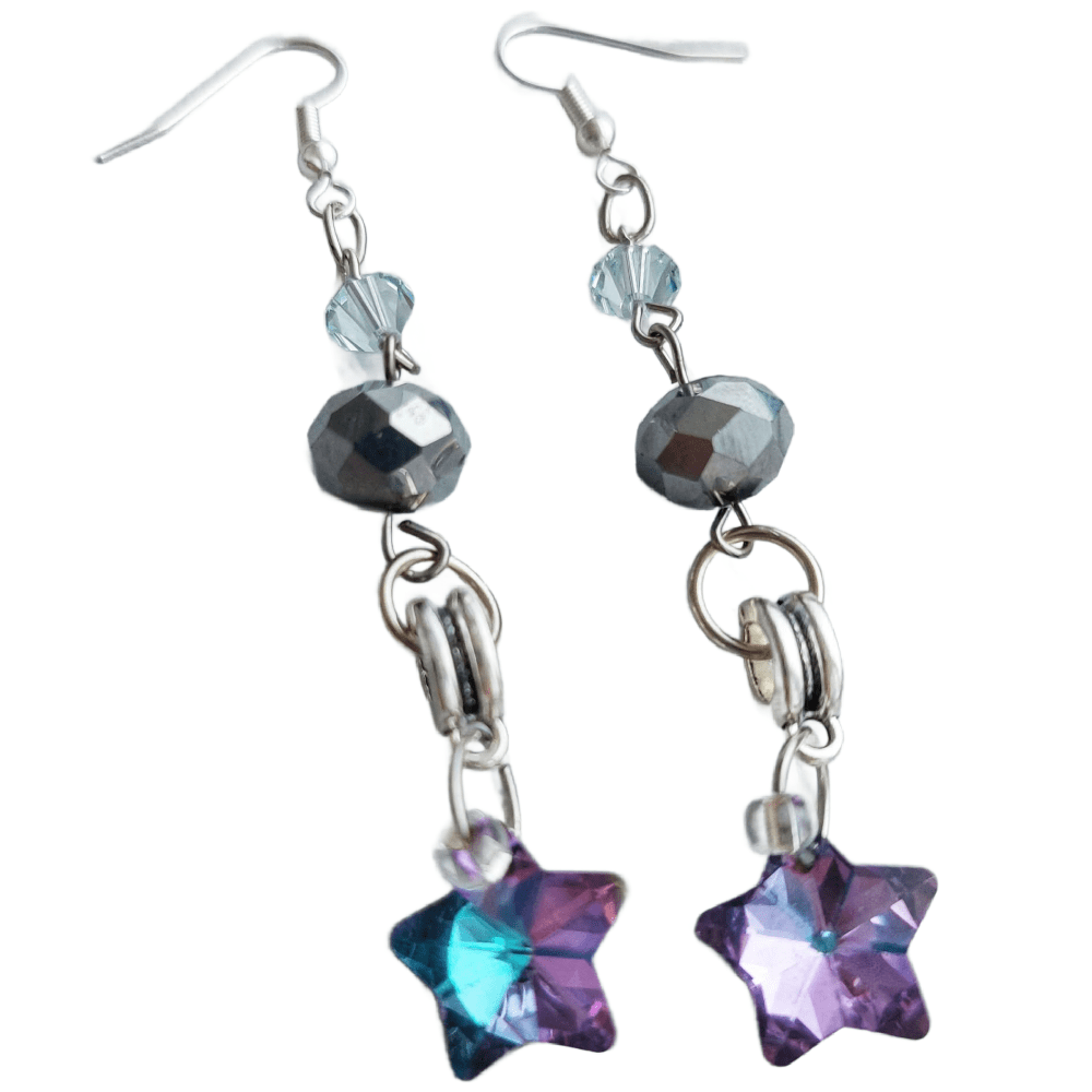 The Stars: Each pair features a unique, multifaceted crystal star that shifts and dances in the light—reflecting the many faces of the feminine spirit.