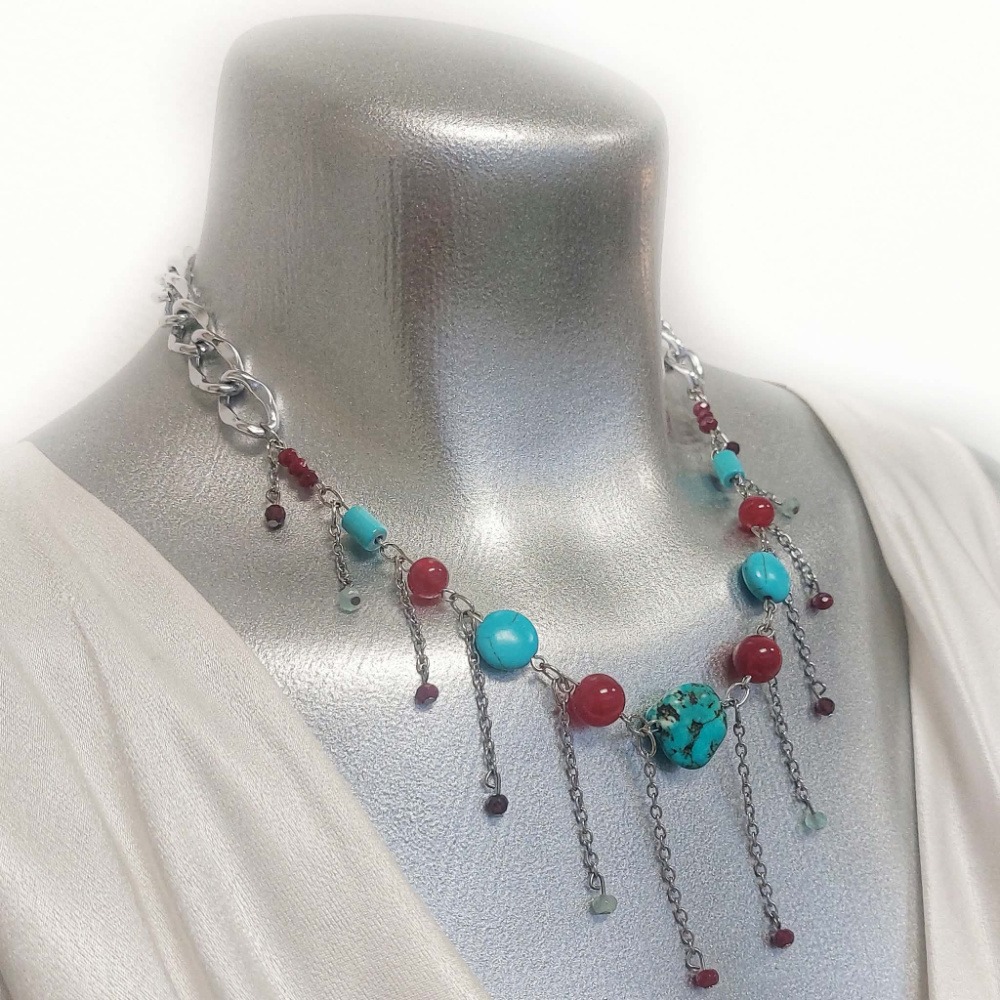 Inspired by natural balance, Earth & Sky blends grounding jasper and agate with the open, expressive energy of turquoise. This necklace invites harmony—between body and spirit, rest and movement, holding on and letting go.