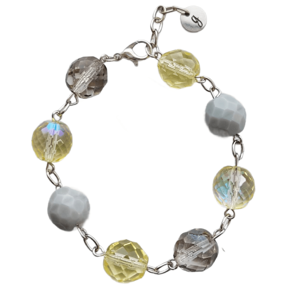 The palette is both optimistic and grounded: brilliant sunshine yellows paired with soft dove greys and shimmering silver accents. Featuring dainty glass “Forget-Me-Not” beads, silver star charms and faceted crystals, these pieces are designed to catch the light and provide an instant mood lift for your customers. Each design maintains a delicate balance between playful texture and refined elegance.