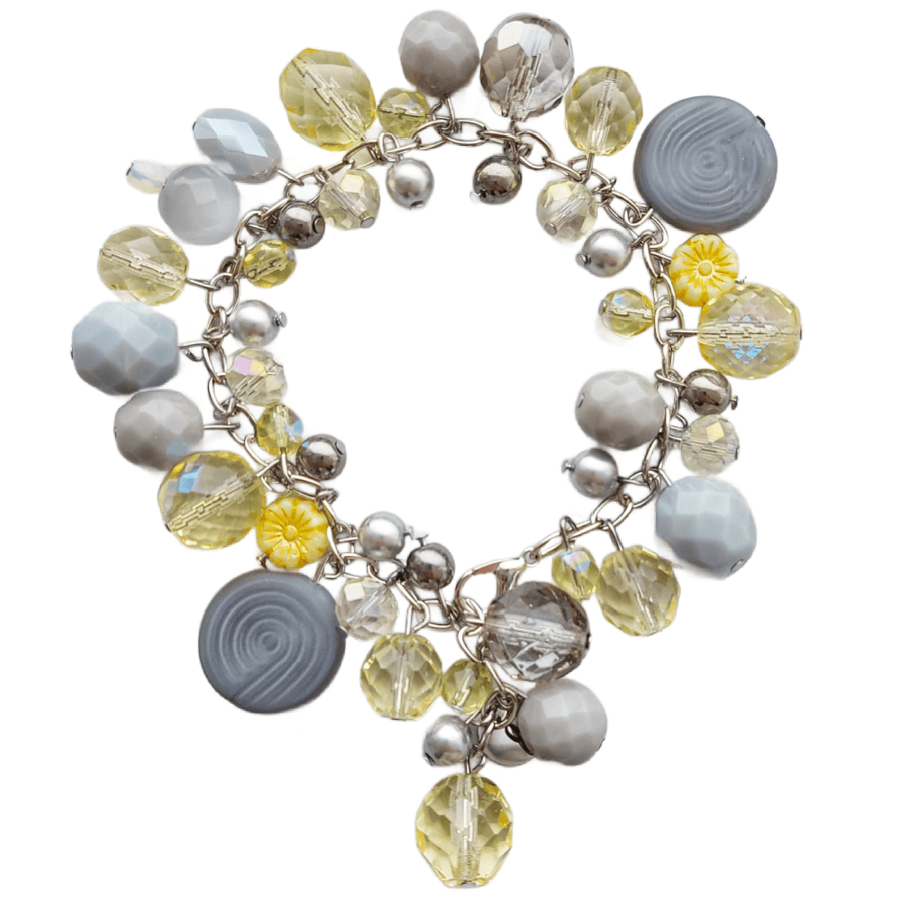 The palette is both optimistic and grounded: brilliant sunshine yellows paired with soft dove greys and shimmering silver accents. Featuring dainty glass “Forget-Me-Not” beads, silver star charms and faceted crystals, these pieces are designed to catch the light and provide an instant mood lift for your customers. Each design maintains a delicate balance between playful texture and refined elegance.