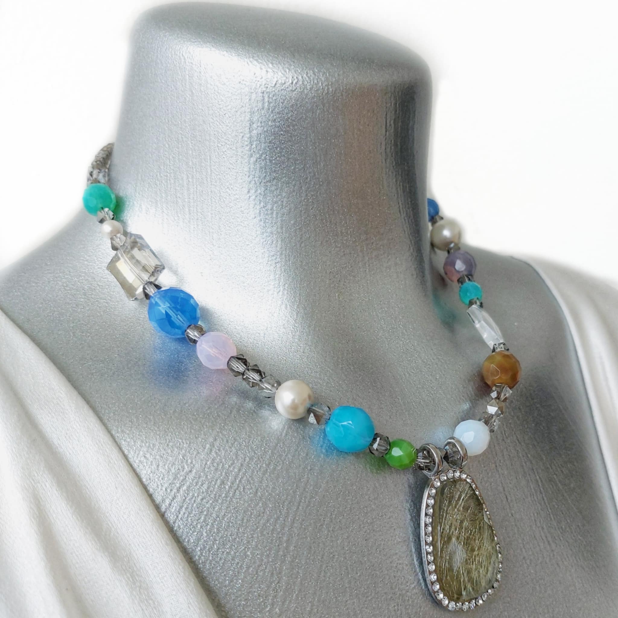 Beads include high quality Bohemian milk glass crystals, Swarovski crystals, pearls, and a stunning one of a kind pendant.