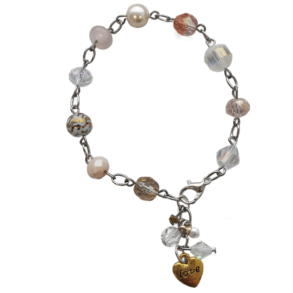 Celebrate love, whimsy, and giving back with our Love Story Bracelet Collection. Each bracelet is one of a kind, handcrafted with care from high-quality crystal and glass beads, as well as rose quartz, and features fun, whimsical charms that tell a unique story of love.