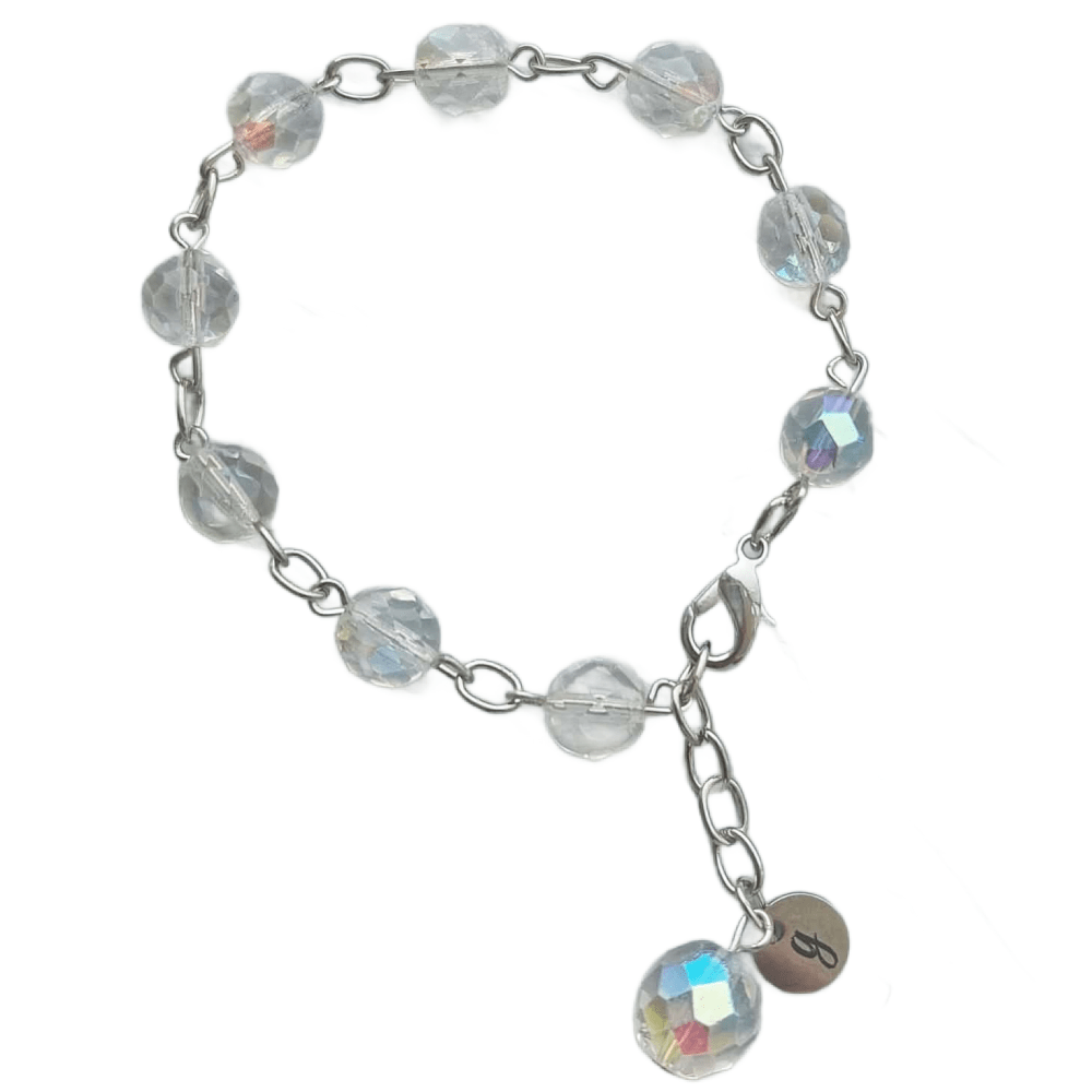This bracelet measures 7 inches with a 1-inch extender for adjustable wear. Crafted with a thoughtful mix of Czech fire-polished glass, and finished with stainless steel findings that are hypoallergenic and nickel-free.