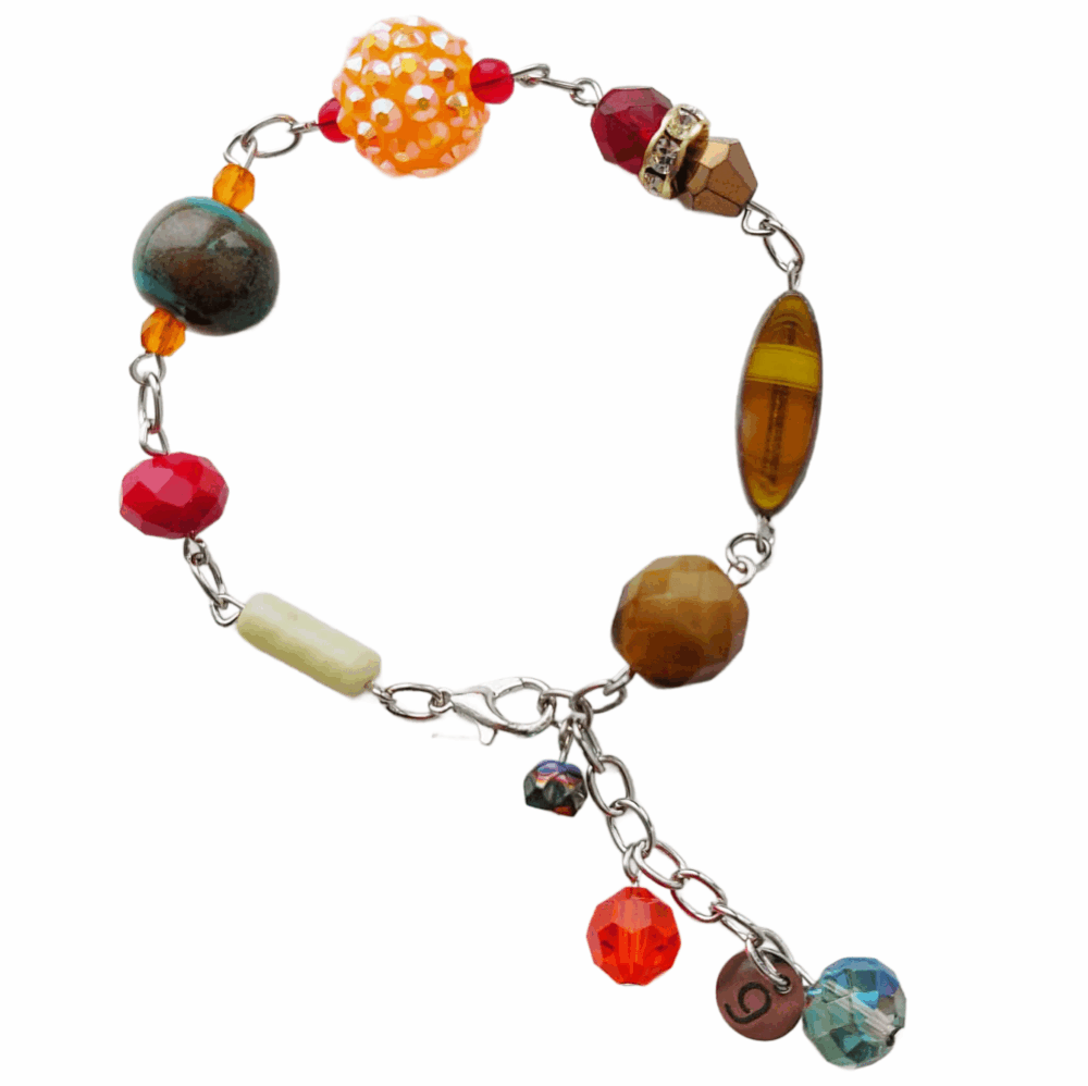 Each piece is handcrafted with intention using semi-precious stones, crystals, and glass beads sourced with care to reflect the depth, strength, and softness of this season of change. From the warm golden tones of Tiger’s Eye to the vibrant energy of Orange Jade and the grounding richness of Jasper, these colours symbolize courage, vitality, renewal, and balance—just like you.