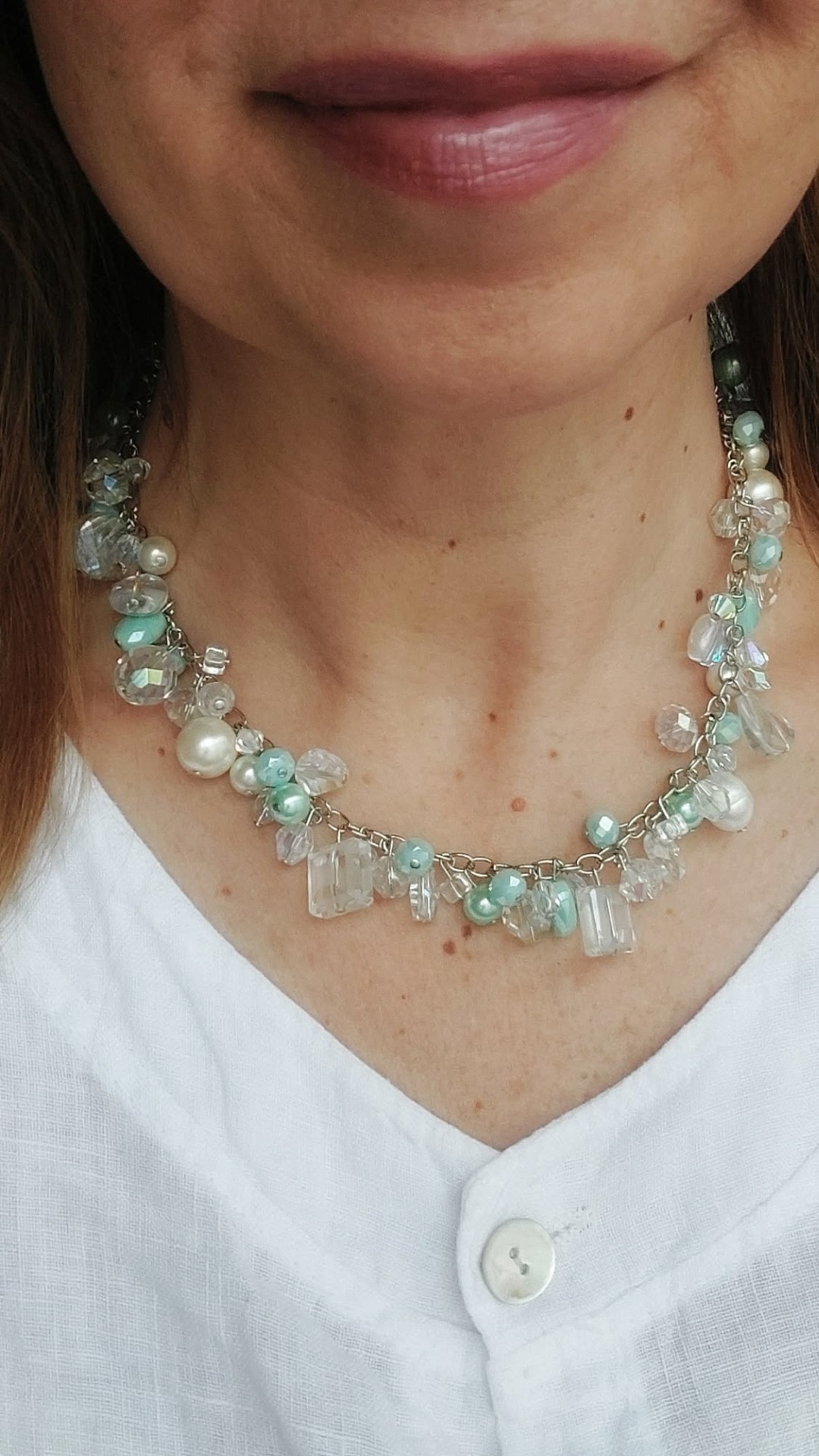 - Materials: Freshwater pearls, Preciosa® nacre pearls, a curated blend of hand-selected pastel crystals.