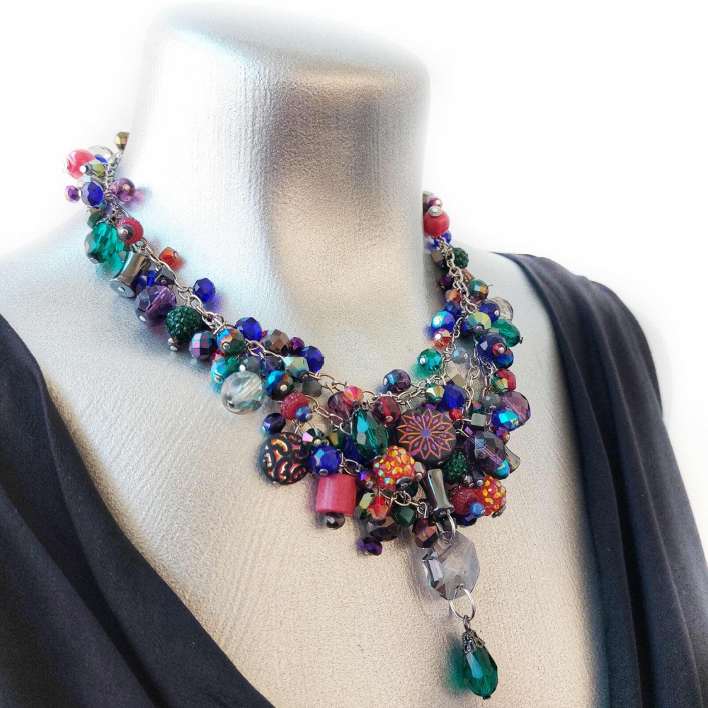Victorian Goth Collection – Poison Garden – Statement Necklace with Crystal Drop