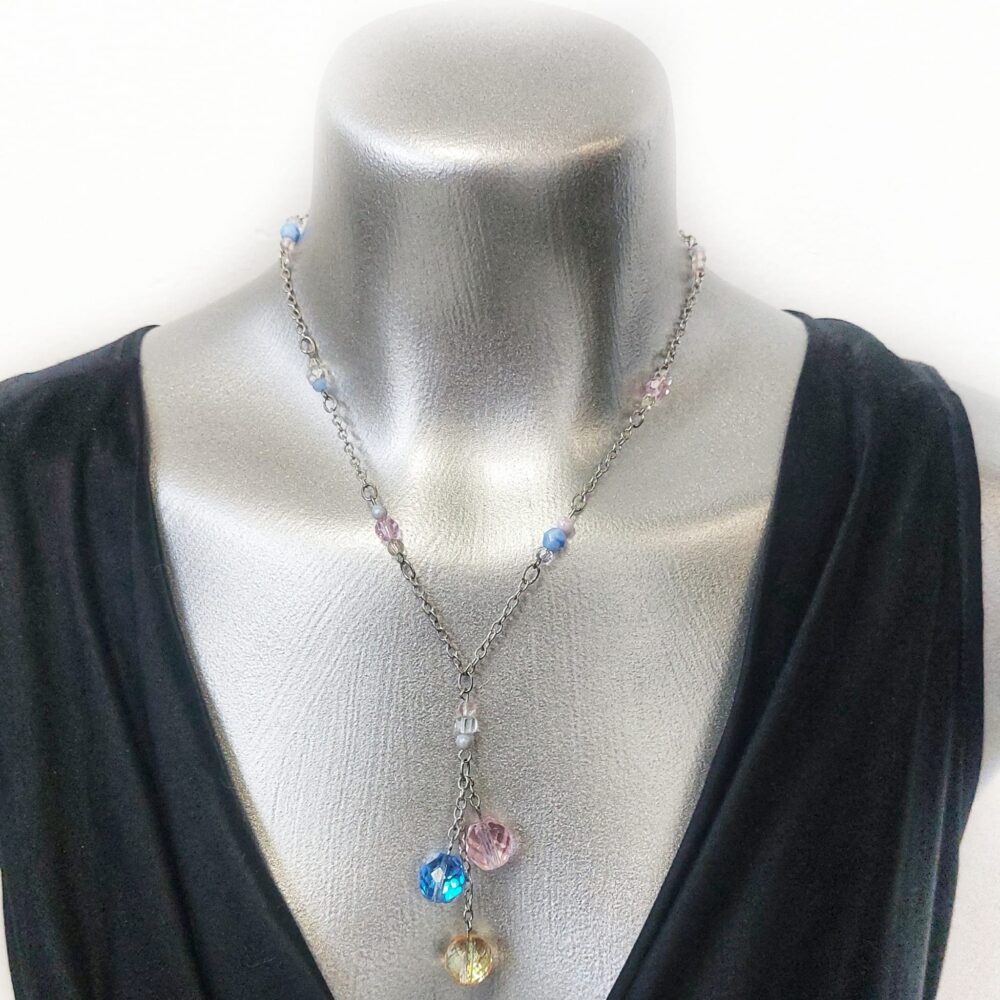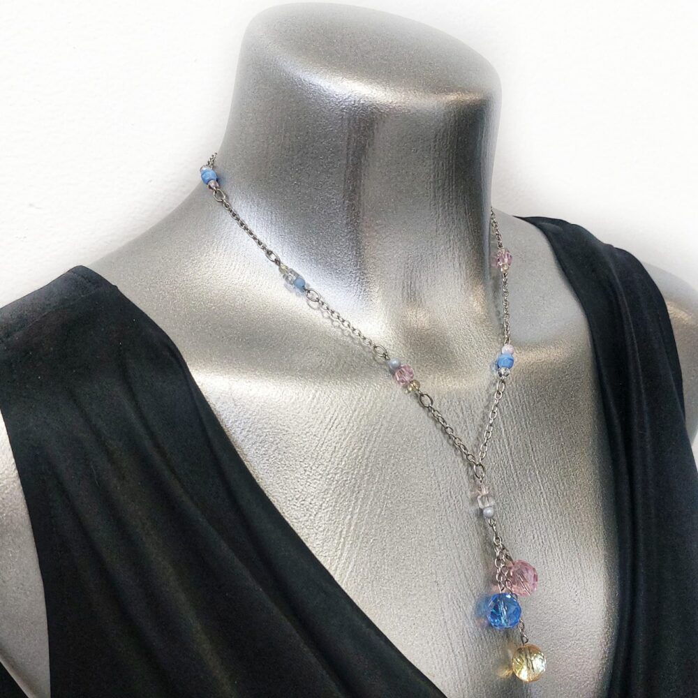 - Whimsical yet undeniably refined, Sugarplum Shimmer captures the soft glow of winter pastels in motion. Pale blue, blush pink, soft yellow, and iridescent elements blend in a dreamy spectrum that feels lifted from a frosted fairytale runway. Light dances across the necklace with every movement, giving it an airy, uplifting presence. This piece brings a modern, delicate take on holiday colour — sweet without being saccharine, playful yet exquisitely crafted.Why You’ll Love It