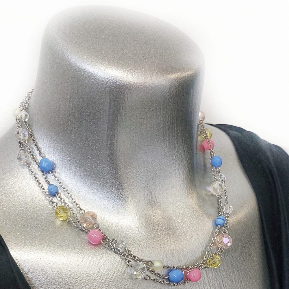 - Whimsical yet undeniably refined, Sugarplum Shimmer captures the soft glow of winter pastels in motion. Pale blue, blush pink, soft yellow, and iridescent elements blend in a dreamy spectrum that feels lifted from a frosted fairytale runway. Light dances across the necklace with every movement, giving it an airy, uplifting presence. This piece brings a modern, delicate take on holiday colour — sweet without being saccharine, playful yet exquisitely crafted.Why You’ll Love It